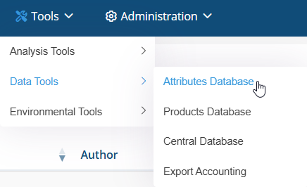 To get to the Attributes Database you click on Tools > Data Tools > Attributes Database