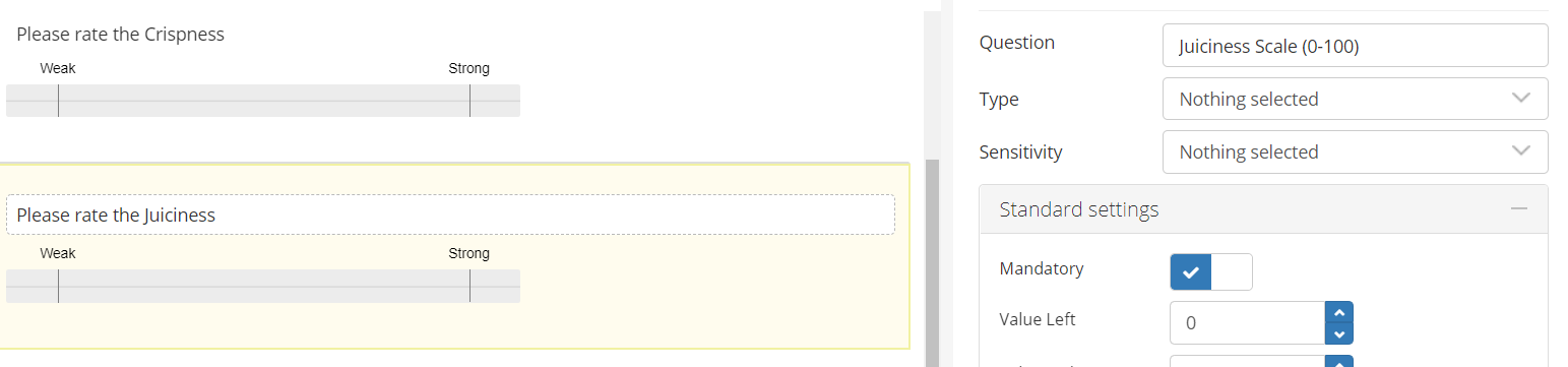 The Question type of your choosing will be added to the questionnaire, like in the example a line scale is added.