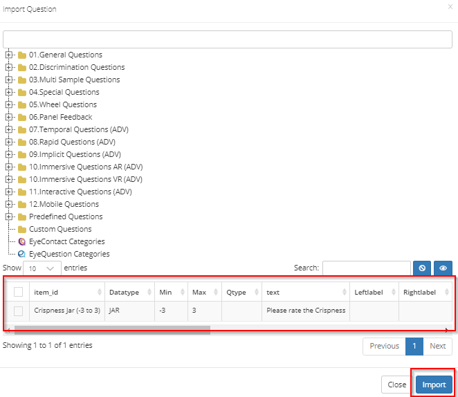 Once you start working with the attributes database you will have an additional button when you want to add a question. The Import Question button is now visible and is linked directly to the attributes database.