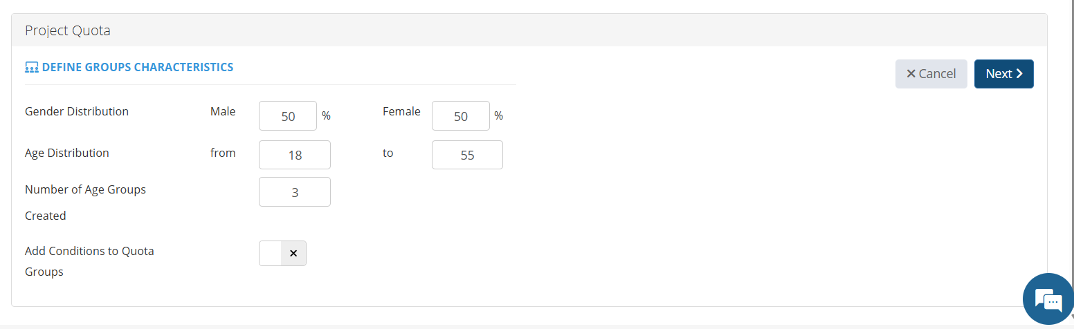 2. Define the Quota Groups’ Characteristics: Once inside the wizard, you will be asked to set up the core demographics for your quota groups: