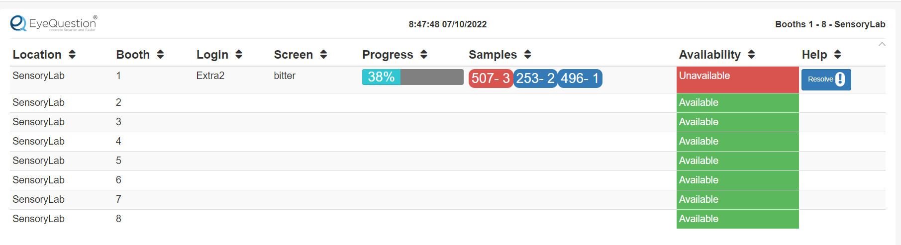 When a sensory or consumer test is conducted at the central facility then it is usually run through the sensory booths. If a panelist has a question then they can request for help by clicking on the "need assistance" tab on the top right corner of a questionnaire. A user needs to make sure "shop help" option is enabled in the questionnaire settings otherwise panelist won't be able to see "need assistance"