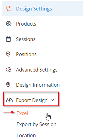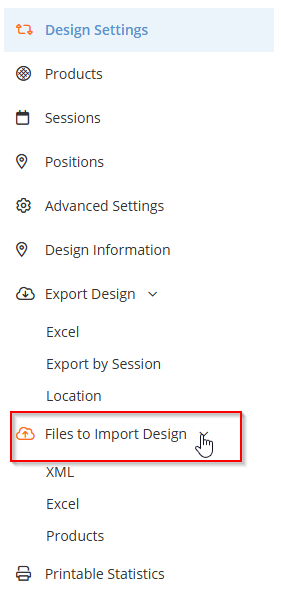 2) Download the design excel file by navigating to the "Design" tab, then clicking Files to Import Design>Excel.