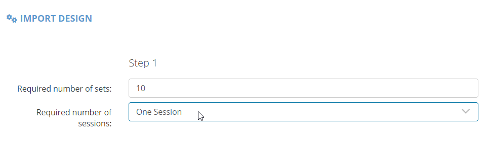 Upon importing the excel file you will have to define the number of sets and sessions used in the design. Please note that setting up the amount of sessions will automatically divide the samples into sessions. If there are 10 samples in the design and the amount of sessions is set to '2', the the samples will be split 5-5.