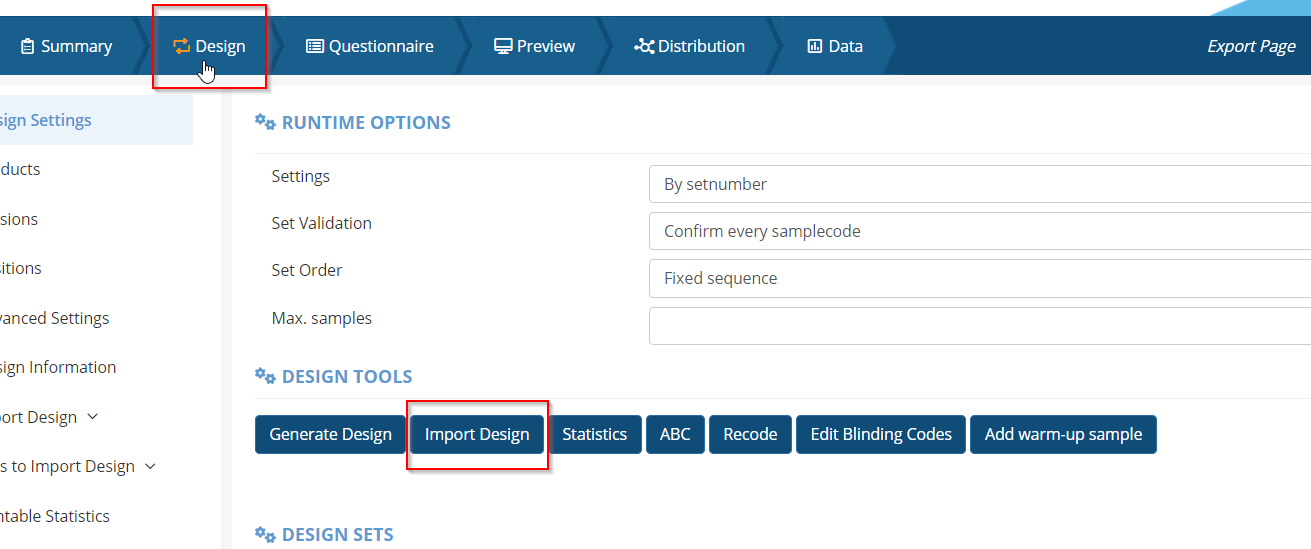 Here are two types of designs you can import : monadic and block. A monadic design will present the samples one by one while a block design will present all samples simultaneously. For example: a profiling project will have a monadic design whereas a ranking or napping project will have a block design.