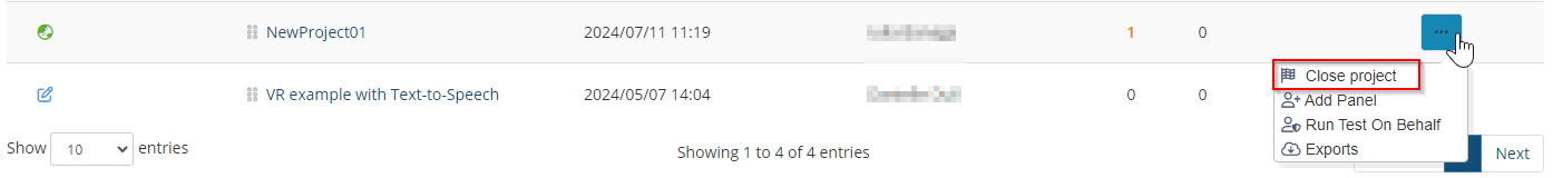 1b. Another way of doing so is to go in the project go to Current Status>Click on dropdown bar>Close Project.