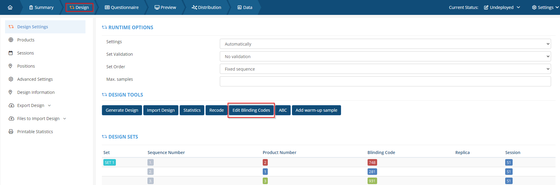 1. Another option is to use the "Edit Blinding Codes" option under the design tools.