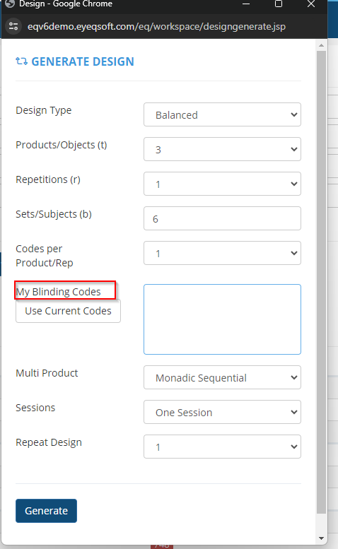 2. Enter your desired blinding codes in the "My blinding codes" section, separated by a comma.