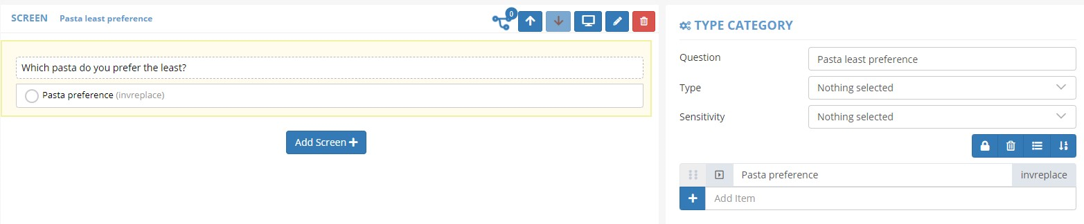 It's also possible to exclude an answer option from your previous question. You could for example set up a category one-choice question: "Which type of pasta do you like to eat? And you want to exclude one of the answer options in the second question (Cannelioni, Fettuccine, Gnocchi etc).