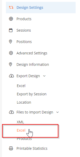 Export your design by clicking to Design>Files to Import Design>Excel .