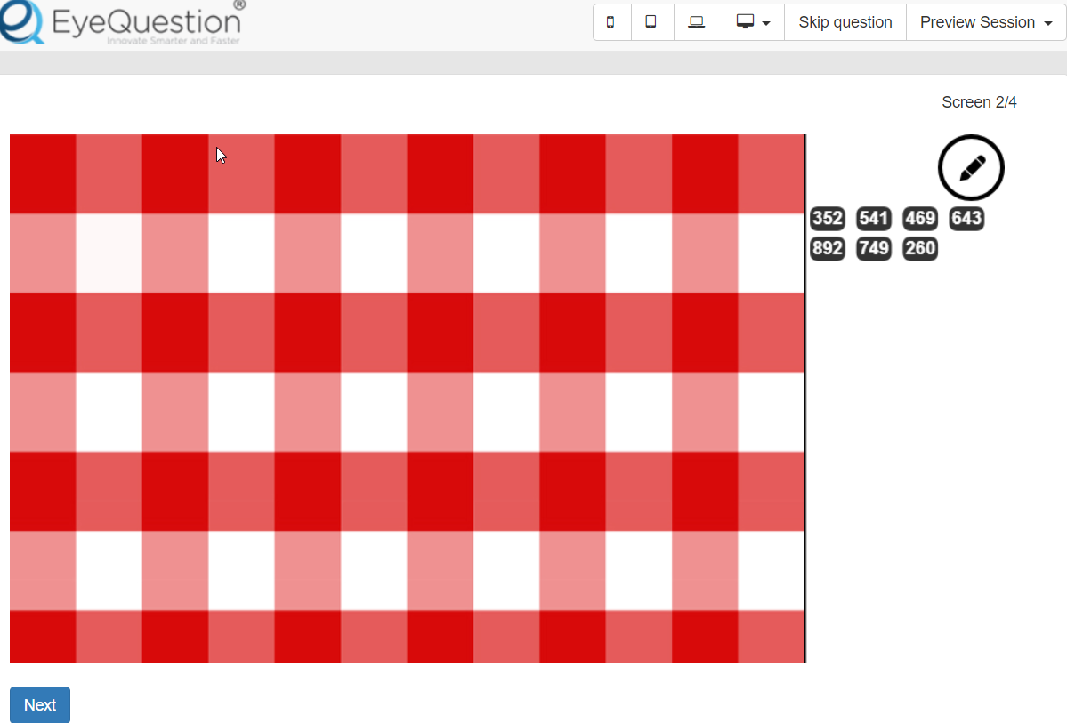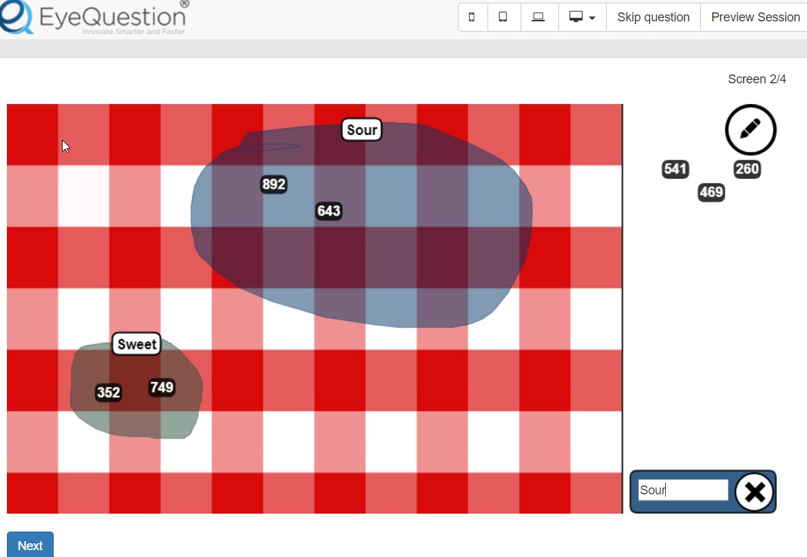 The panelist can position the samples by simply dragging the sample code to the required position. It is also possible to mark a region around the samples by first clicking the pen symbol