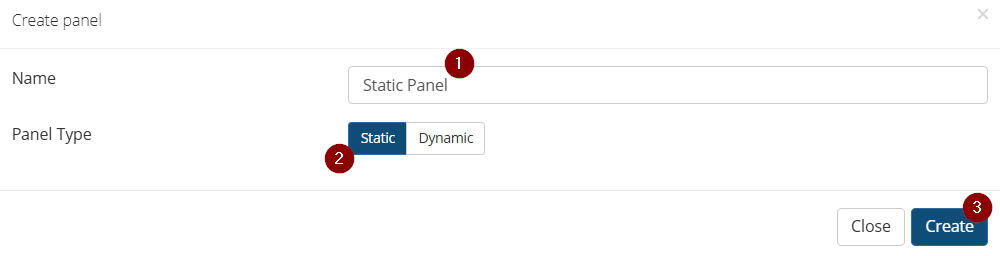 A pop-up will become visible in which the user is able to name the panel and choose the Static option.