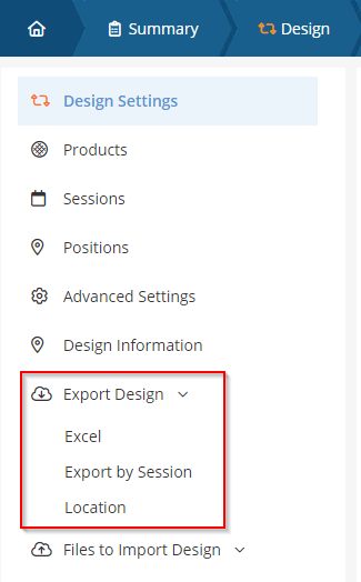 2) Export by session: If a project design has multiple sessions then this export will export the design per session.