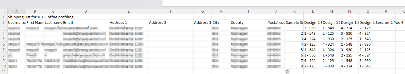 The shipping list function is an Excel sheet (in the .csv format) that allows a user to print labels for shipping the products to panelists. This feature should be used when the design runtime settings is "by panelists" which allows to link a set to a specific panelist. This export will print details of a panelist for example: their login, first name, last name, address along with the assigned set and samples.