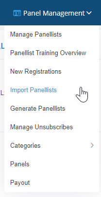 1. Go to Panel Management and click on ''Import Panellists'' (The option can be used to create new panellists, but also to update existing panellist.)