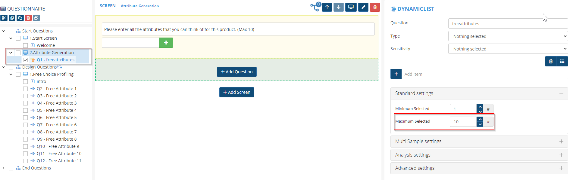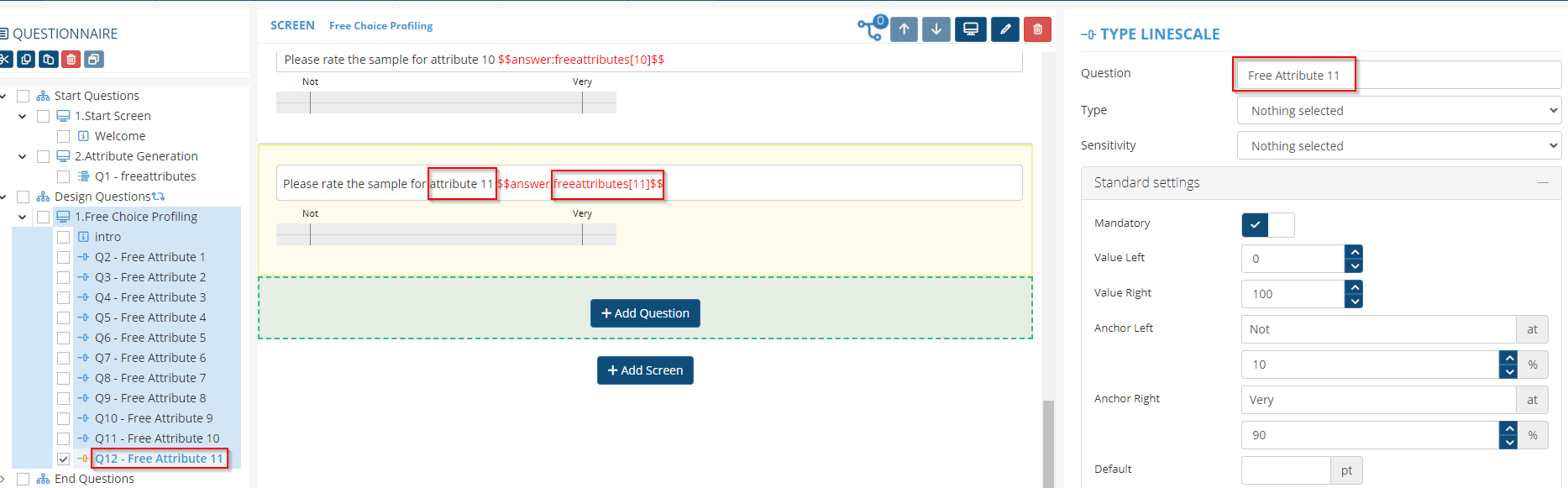 Participants will be able to create an attribute list in the start question, and they will be able to indicate the intensity of those attributes in the design question.