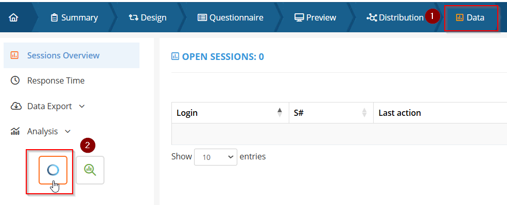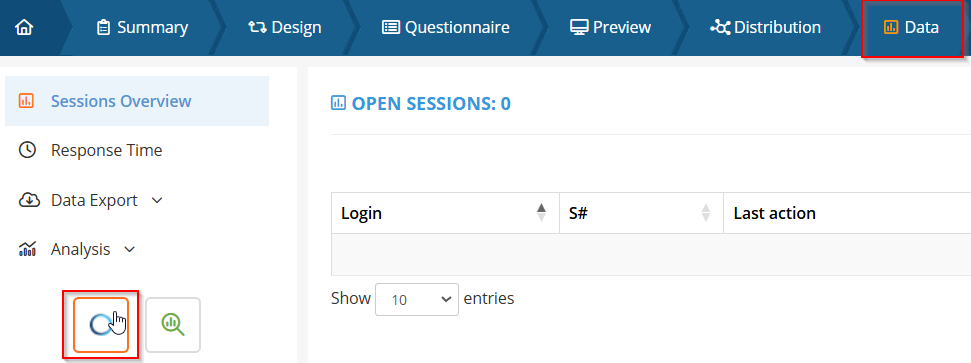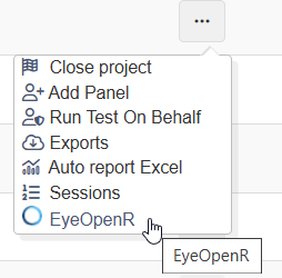 To merge data in EyeQuestion, you need to open EyeOpenR from one of the two projects that you want to merge. You can do this either by clicking on the EyeOpenR quick action button next to the name of your project in the Project browser or from within the project itself by navigating to the Data page and selecting EyeOpenR from the Analysis drop down menu.