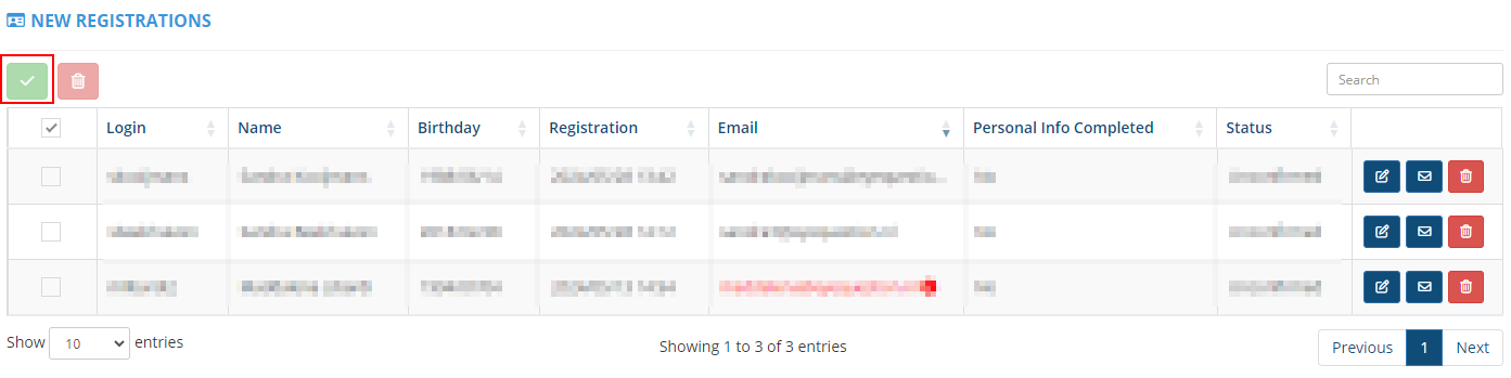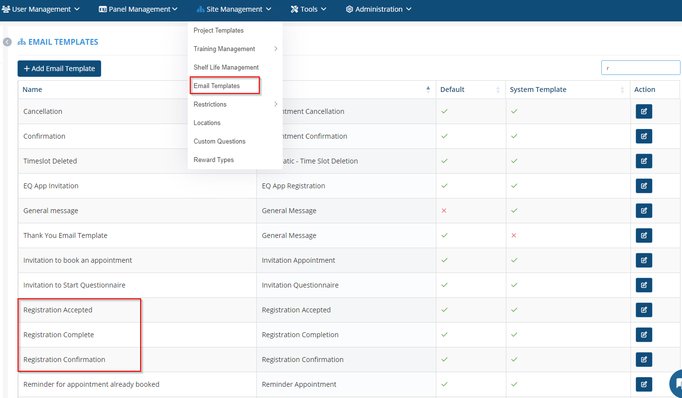 4. From the new registration tab user can select all the new panellists who have verified their email address and click on accept. The panellist will receive the email that they have been accepted as a panellist.