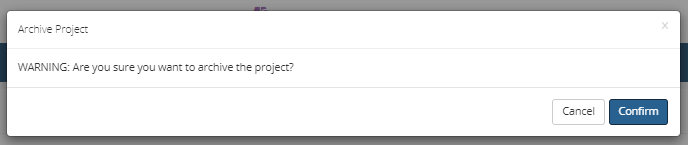 Archived projects will no longer be visible in the main project overview. After clicking the archive button, the user will receive a warning message to confirm if you would like to archive. Projects cannot be reinstalled from the archive but users are able to export the data and access the project when the project has been archived.