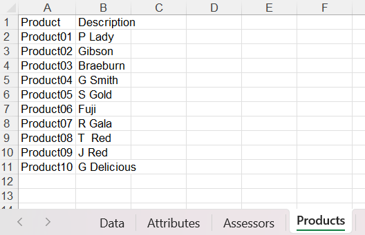 will contain the metadata for products. The first two columns are fixed, they are called Product and Description. The product