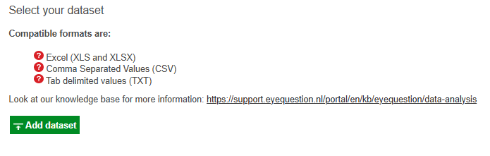 To upload you external dataset, you can do so by clicking the "Add dataset" button.