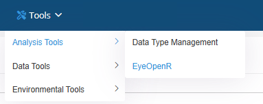 clicking on Tools - EyeOpenR. When opening EyeOpenR using the project export menu, data from the project will be pre-loaded. When running EyeOpenR through the main menu, you are able to upload you external dataset.