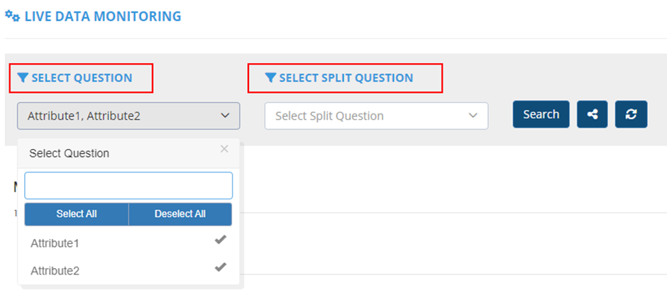 After selecting the project of interest, you can select which question(s) you would like to monitor, the output is again created in separate graphs per attribute. Additionally, you can again check the relation between categories within your dataset by selecting a split variable in the Select Split Question section.