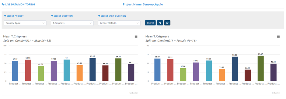 Category data such as hedonic data & demographic data or interval data such as that defined on line scales are often collected in sensory or consumer research questionnaires. In order to rapidly visualize these results, you can make use of the Live Data Monitor. This tool provides a faster way to visualize the categorical & line scale results, making it easier to monitor a research projects progress. The monitor displays frequency results for category data and means for line scale data in simple, easily interpretable charts.