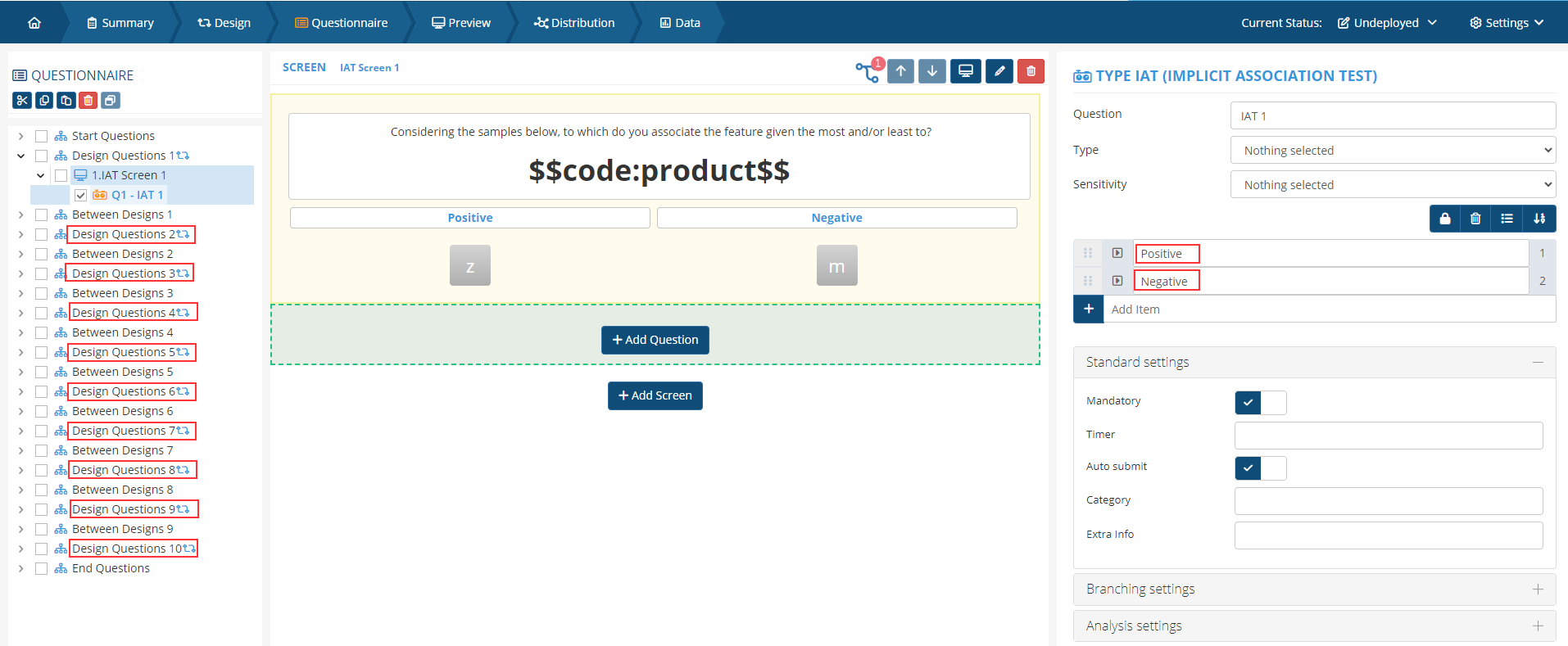Step 4. Adjust the attributes within the questionnaire. In each Type IAT question, ensure the answer display correspond to the correct left and right attributes you want the panellists to select.