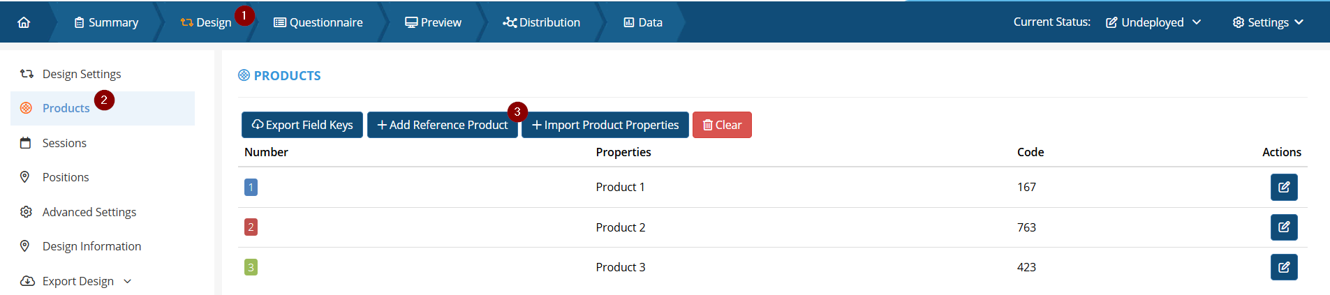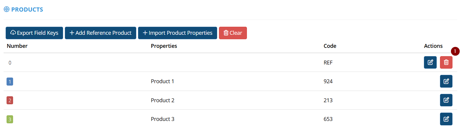 This will create an extra entry with the number 0 which means that no data will be collected for this sample. The sample is only for the Panel Manager to know what the exact reference was and is not visible in the actual design page. The Reference sample can be easily deleted from the Product page by clicking the bin icon.