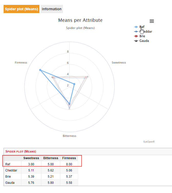 - In the second field, specify the point on the scale where the reference value should be shown. For instance, for the attribute "Firmness," enter 8 to mark the reference value at that point.