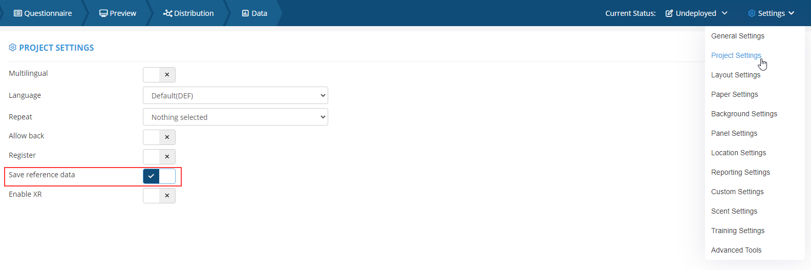 Enable the option "Save reference data.", ensure this option is enabled before deploying your questionnaire.