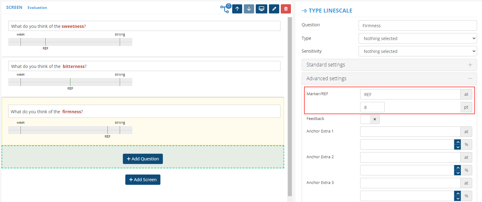 - Under "Marker/REF," enter the label that panellists should visualize on the scale. In this example, we used "REF."
