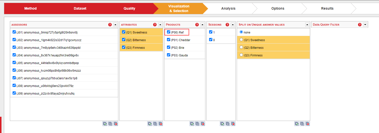 Including these reference values not only aids panellists during the evaluation process but also allows for consistent data collection. Additionally, you can choose to save these reference data in your final dataset to facilitate subsequent data analysis, enabling you to compare the results of different products with the golden standards effectively.