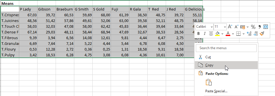 4. Open the downloaded 'Table of Means' file and copy the table of means.