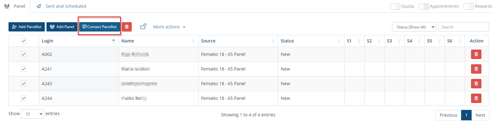 - You can send an Invite, a Reminder to panelists that were invited but did not finish yet, or decide to send an Email to all your panel.