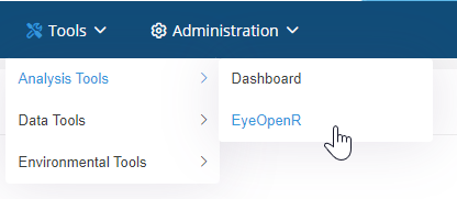 Step 1. Open EyeOpenR by clicking on Tools>Analysis Tools>EyeOpenR or directly from your project by clicking on Data>EyeOpenR logo.