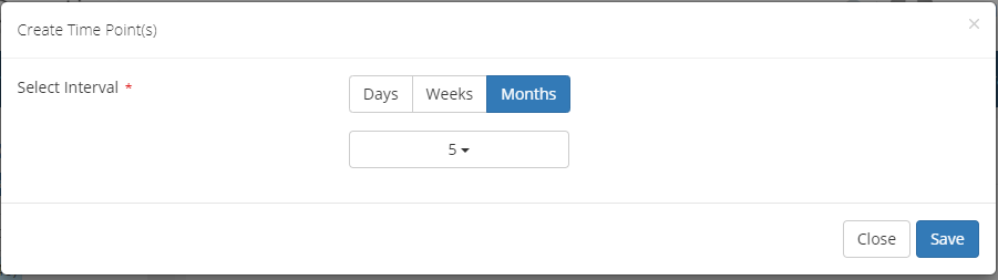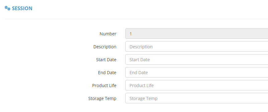 Step 2. You can add a description of your Products (1) as well to your Sessions (2) and you can indicate the start and end date of each session. A session represents a timepoint, e.g. Day 1, Week 2, Week 4 etc.