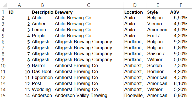 Before products can be imported to be used in an EyeQuestion project, an excel file with product data has to be created. The image below shows an example of how an excel file can be created to be used with the PDB.