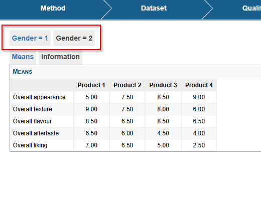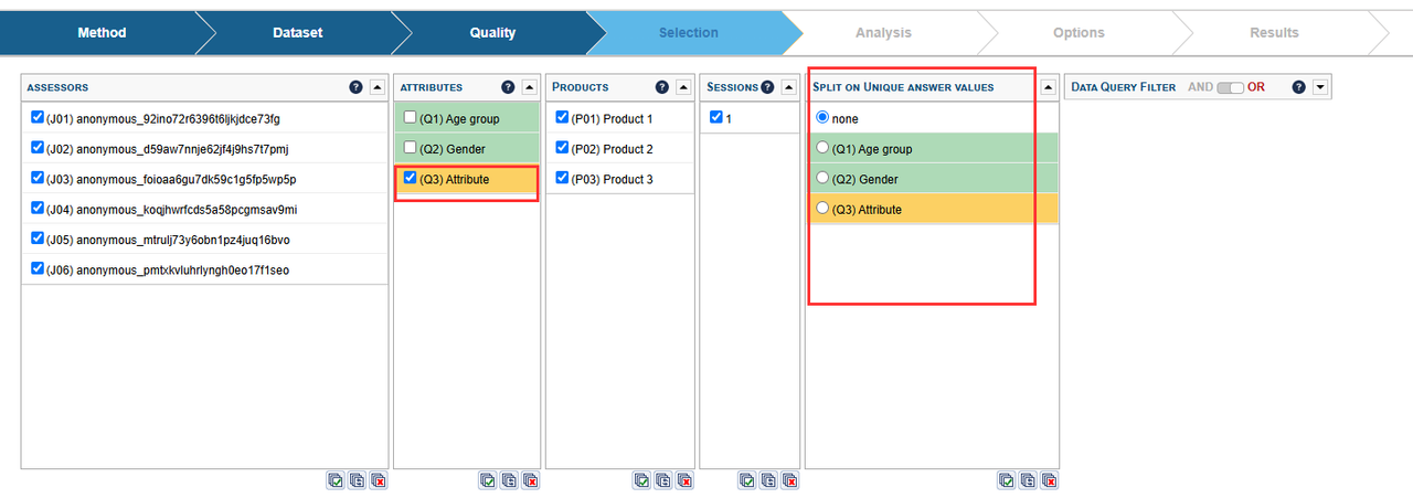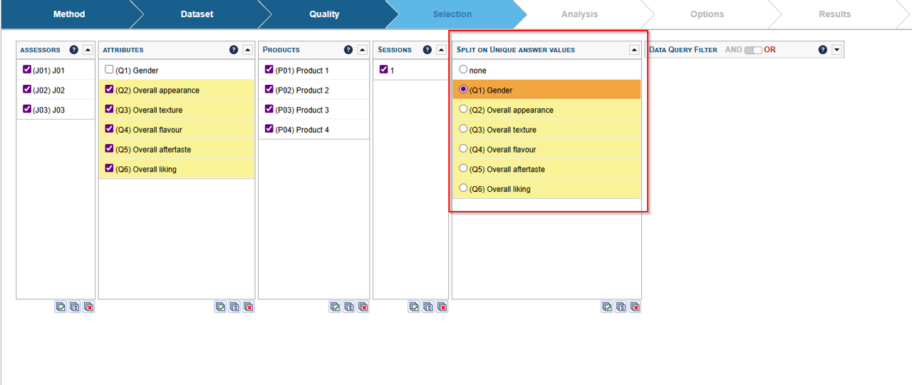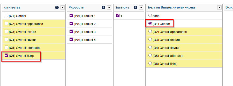 Note -Split on Unique Answer Values option is at the moment included for the following Sensory and Consumer methods: