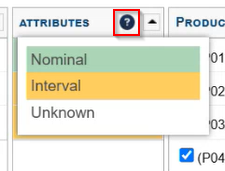 You can bulk select/deselect attributes of a certain datatype by clicking on the question mark "?" and then clicking on the datatype you want to affect.