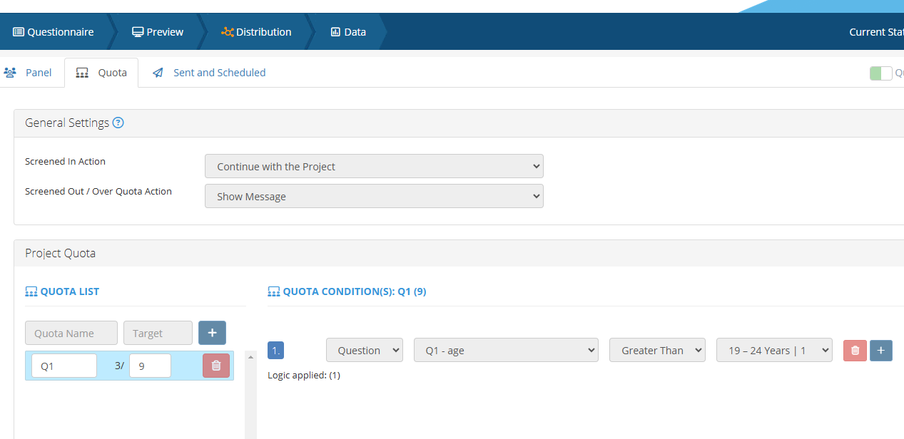 Panellists results will be displayed split in 2 separate tabs - Screened in/Out in the quota QT.