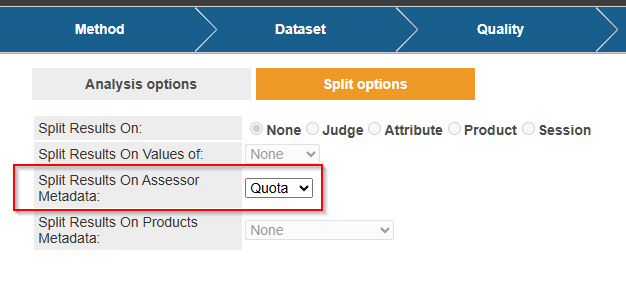 This option is available in the Options Step in EyeOpenR, and it allows users to effectively utilize quota information and category questions to split the analysis results on this assessor metadata.