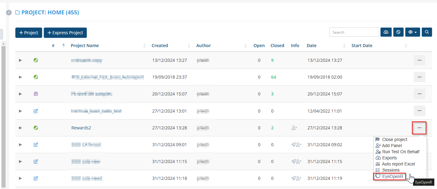 - From within the project: Navigate to Data tab and click on the EOR logo.