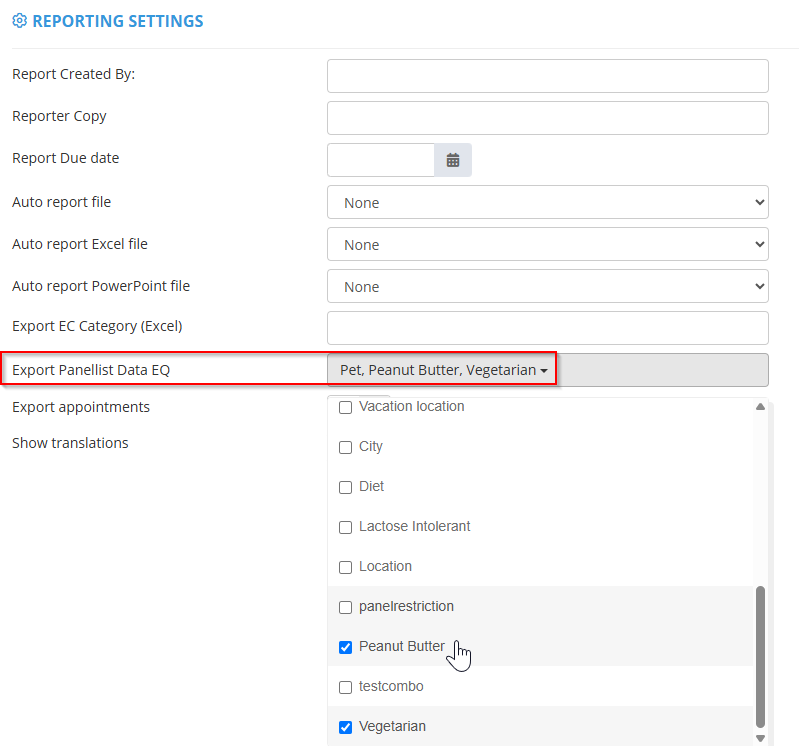 - Split on EQ categories - offers the possibility to split the results in EyeOpenR based on the categories of the panellists that you previously have selected in the project's Reporting settings.